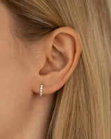 Die goldenen Creolen mit Steinen sind hervorragend für das Lobe, High Lobe und Helix Piercing geeignet. Sie kann als Paar oder einzeln getragen werden. Da nicht nur die Vorderseite des Ringes, sondern auch die Rückseite mit Zirkonia Steinen besetzt ist, funkelt sie umso mehr. Die Lania Creole kann mit allen Ohrring Anhängern mit einem Anhänger-Durchmesser von 2.5mm (Größe: 'groß') kombiniert werden. Der Teardrop Anhänger und der Marquise Anhänger lassen sich hervorragend mit der Lania Creole kombinieren.