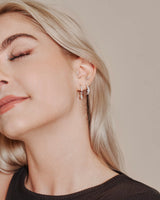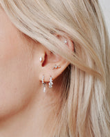Die Creole ist besetzt mit fünf Cubic Zirkonia Kristallen in unterschiedlichen Größen. Die Zoé Creole kann mit unterschiedlichen Ohrring Anhängern, in der Größe 'groß', kombiniert werden.